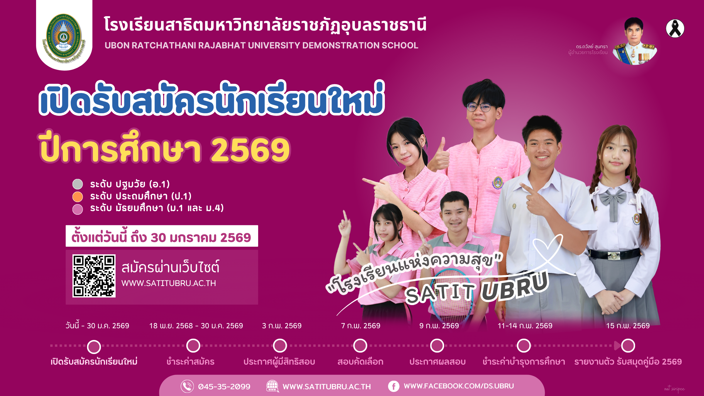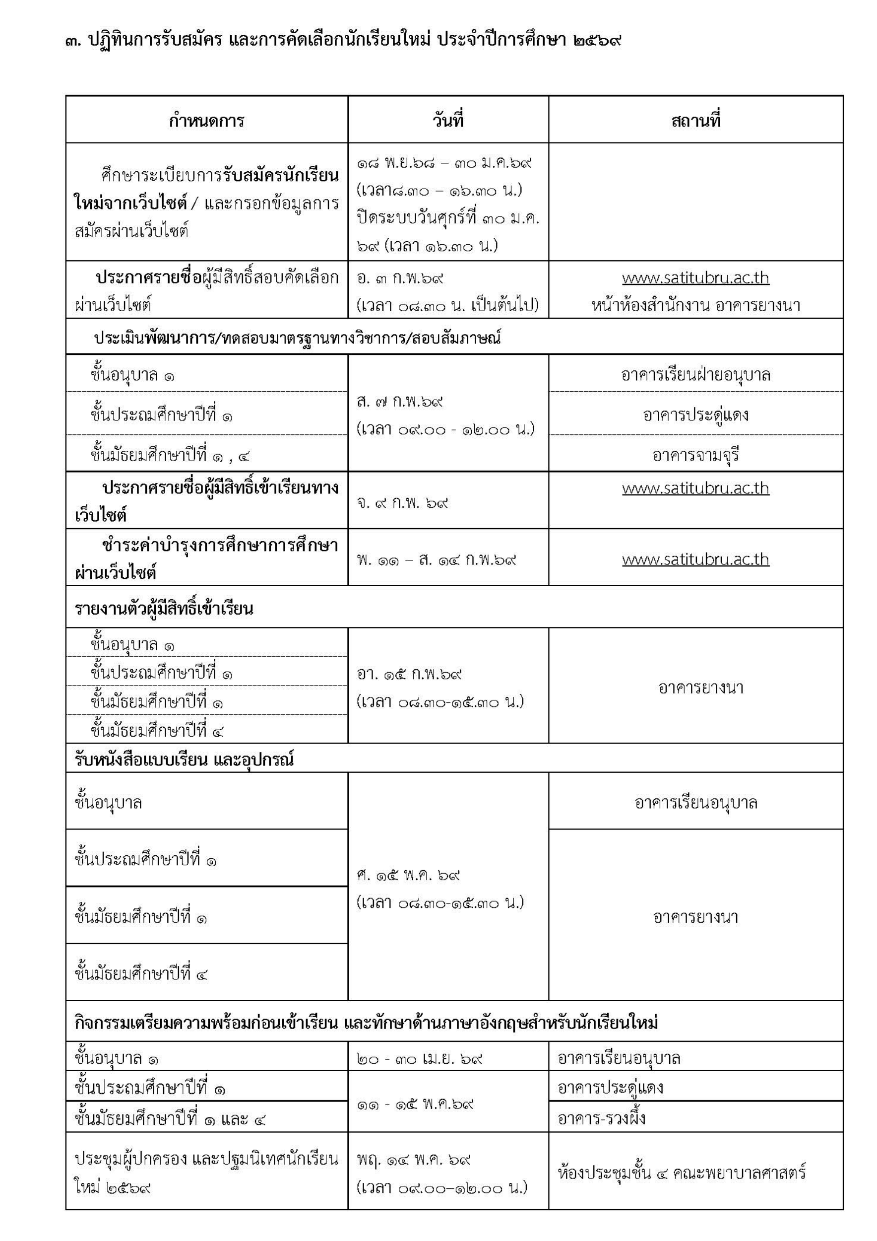 รายละเอียดประกาศรับสมัคร : https://www.satitubru.ac.th/?Page=Reg&Cont=RegAnnounce