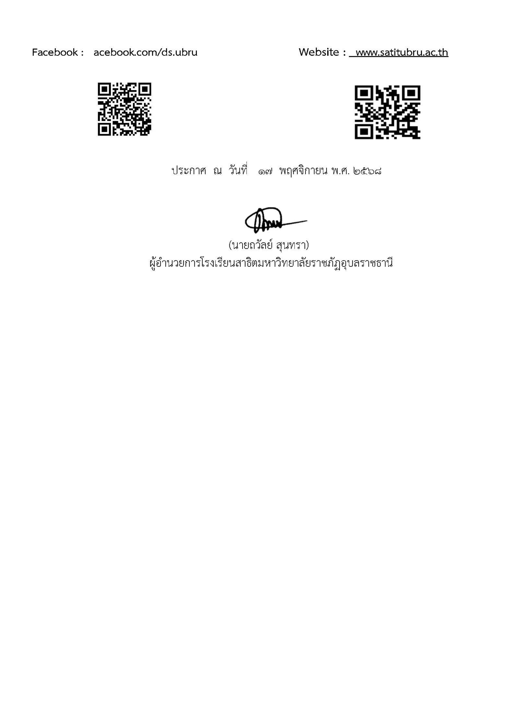 เว็บไซต์ประกาศ : www.satitubru.ac.th
