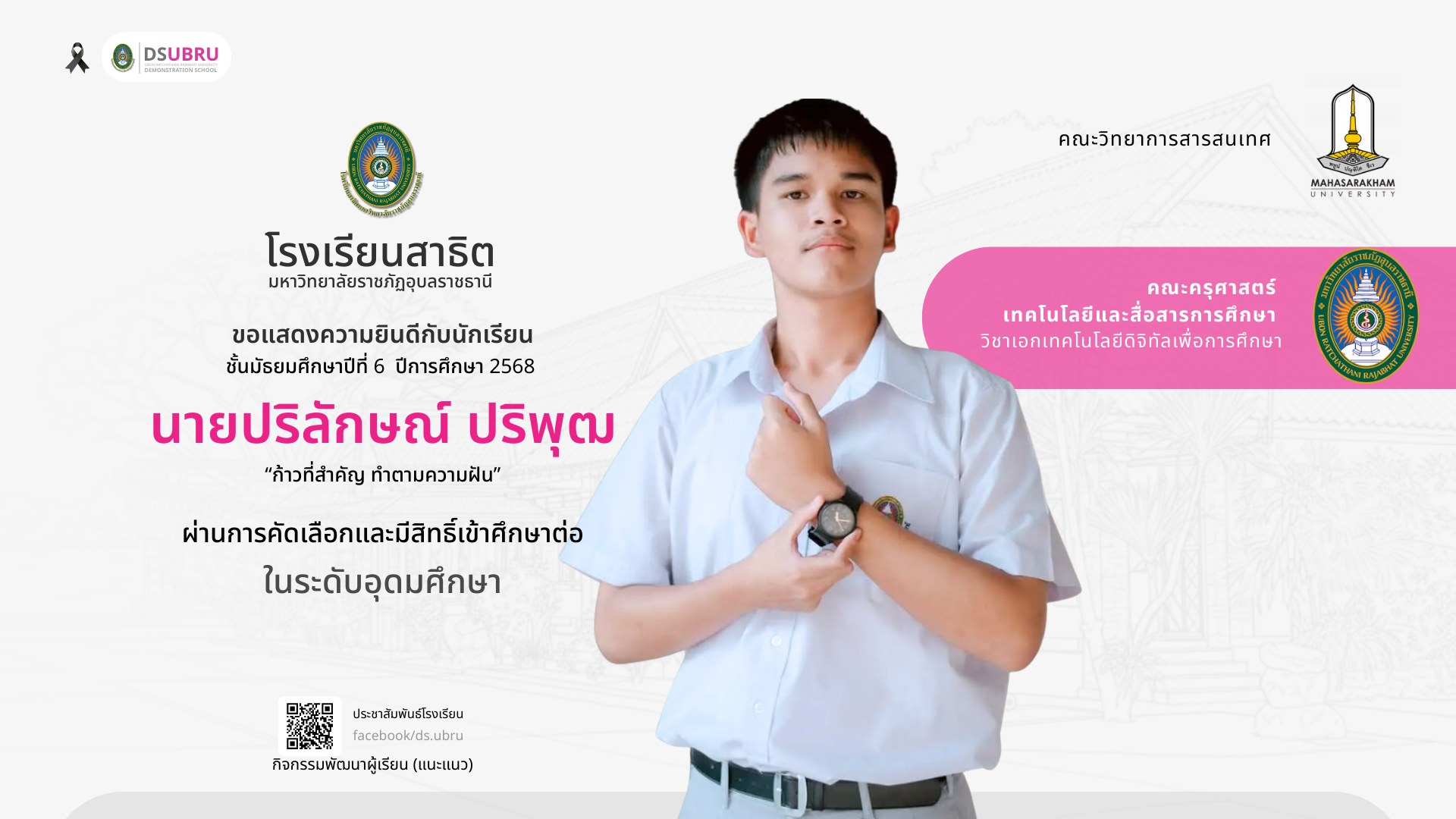 สาธิต มรภ.อุบลราชธานี แสดงความยินดีและส่งกำลังใจนักเรียน ม.๖ ก้าวสู่ระดับอุดมศึกษา