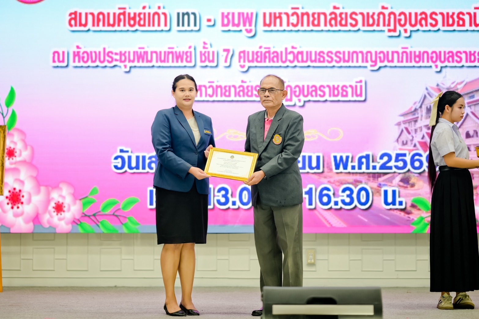 โดยมีพิธีมอบเกียรติบัตร เมื่อวันเสาร์ที่ 18 เมษายน พ.ศ. 2569 ณ ชั้น 7 ศูนย์ศิลปวัฒนธรรมกาญจนาภิเษก ซึ่งได้รับเกียรติจาก นายสมพงษ์ โลมะรัตน์ นายกสมาคมศิษย์เก่าเทา–ชมพู เป็นประธานในพิธีมอบรางวัล