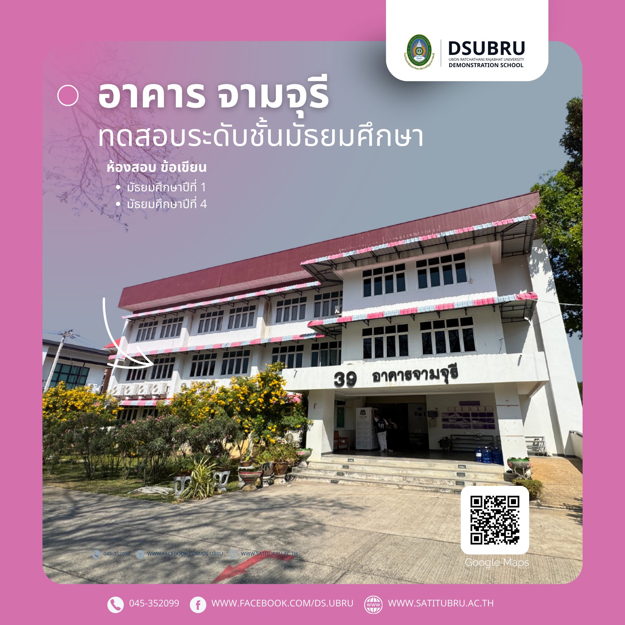 สถานที่สอบคัดเลือกนักเรียนใหม่ ปีการศึกษา ๒๕๖๙ โรงเรียนสาธิตมหาวิทยาลัยราชภัฏอุบลราชธานี