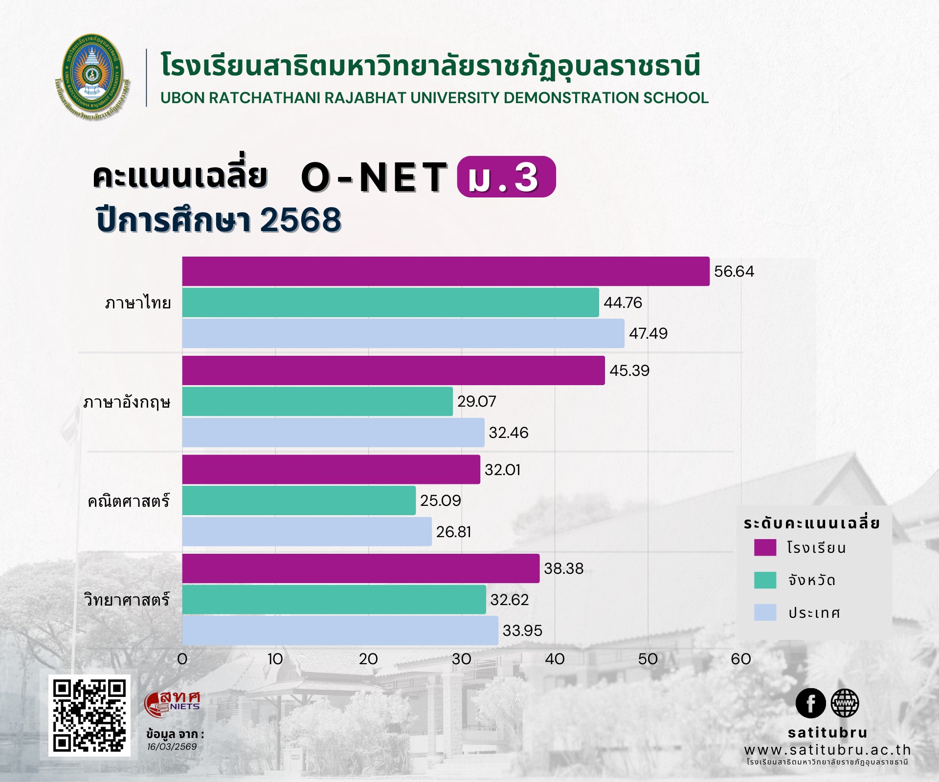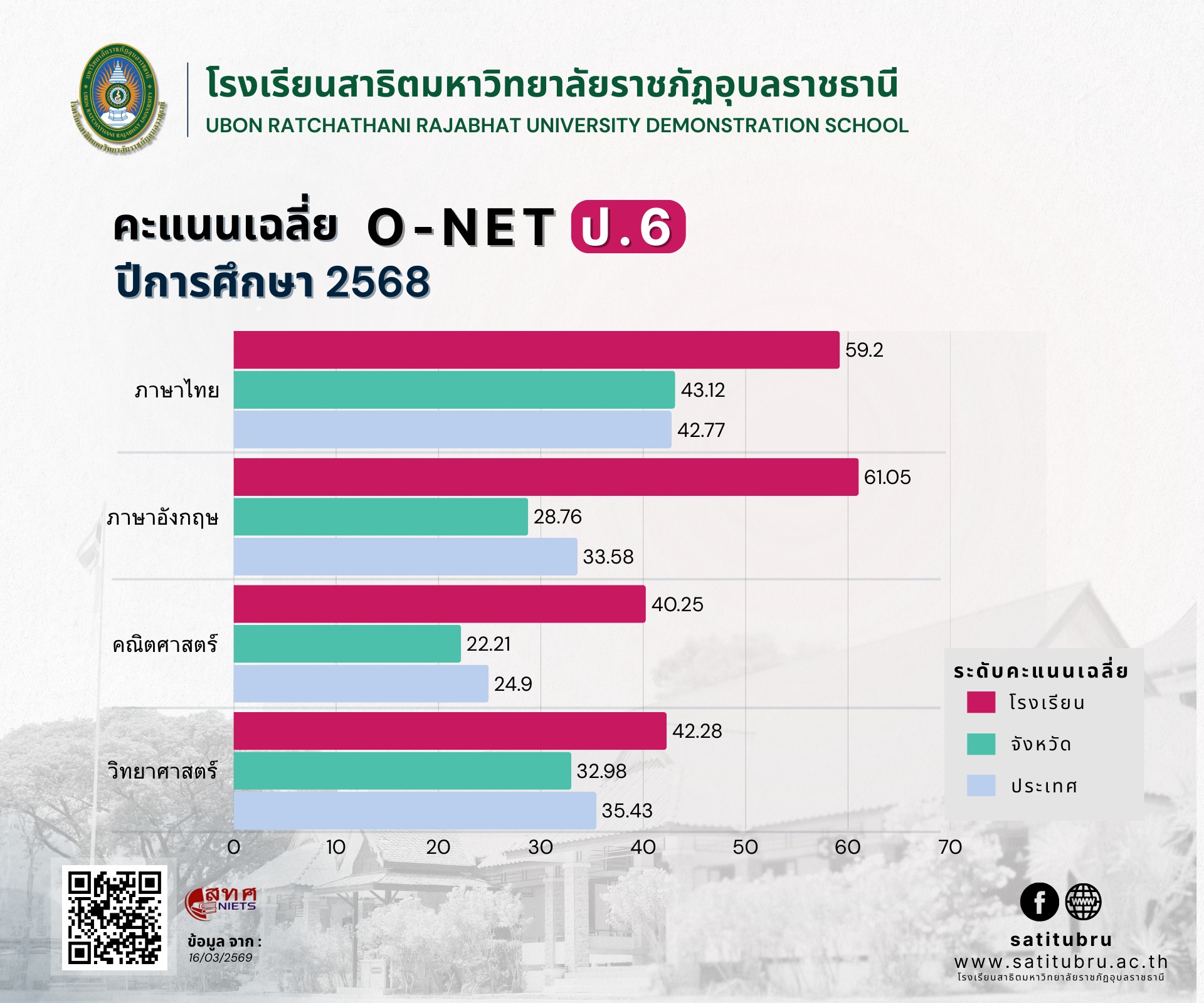 ผล O-NET ๒๕๖๘ สาธิต มรภ.อุบลราชธานี